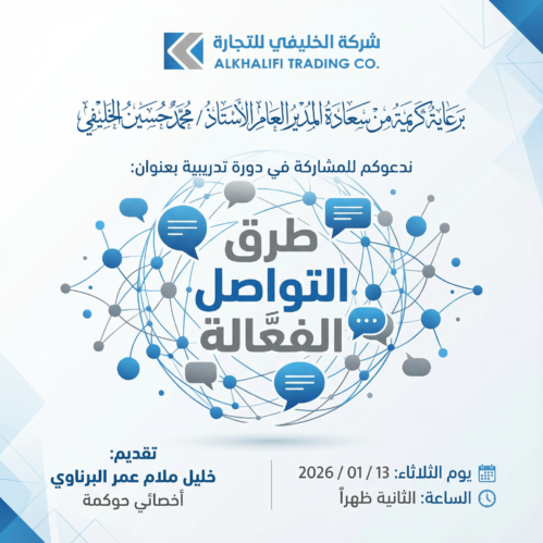في إطار سعيها المستمر نحو تطوير الكوادر البشرية ورفع كفاءة بيئة العمل، نظّمت شركة الخليفي للتجارة دورة تدريبية متخصصة بعنوان: