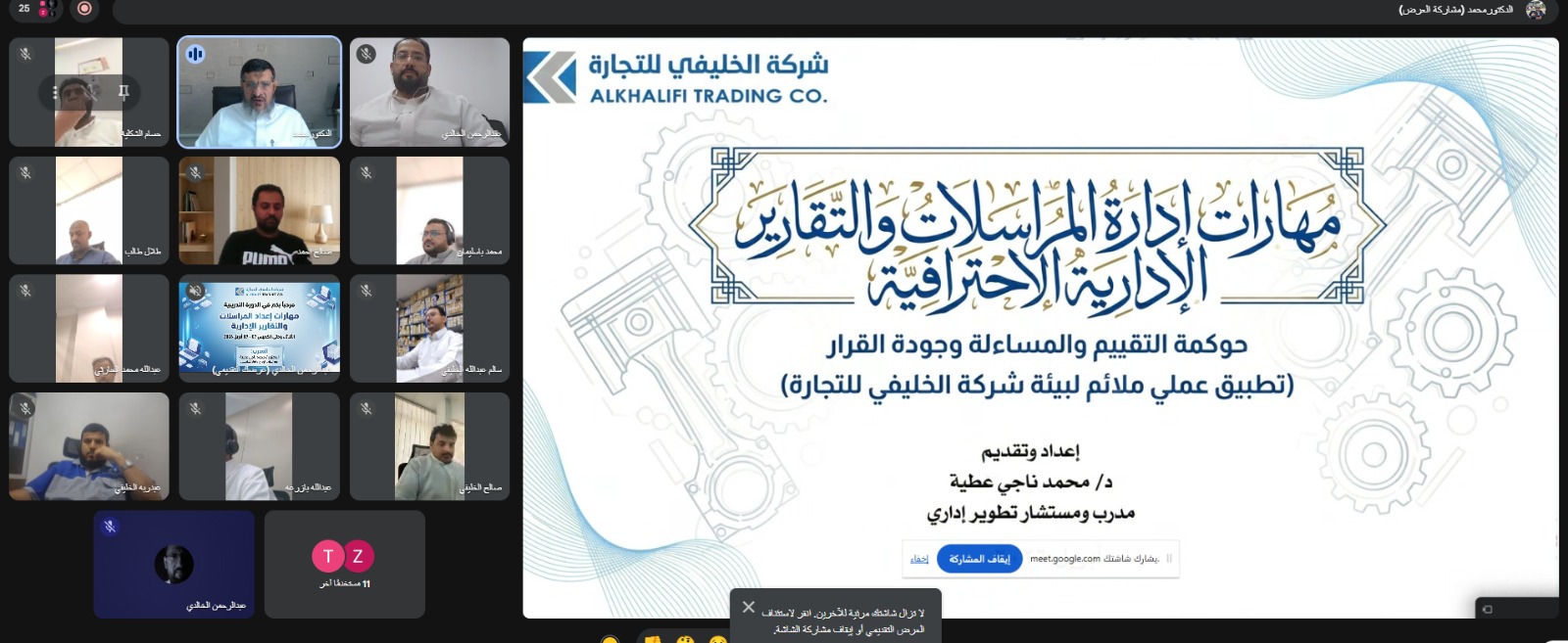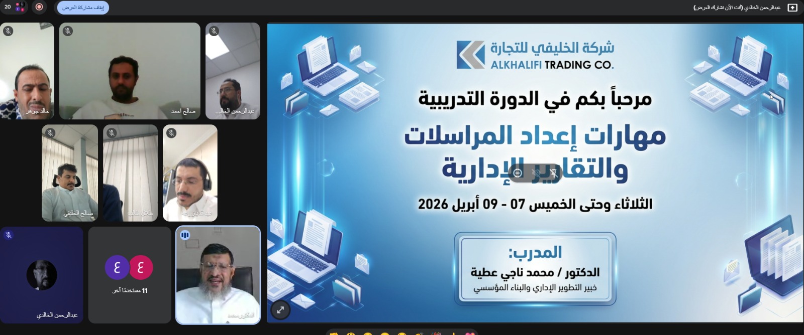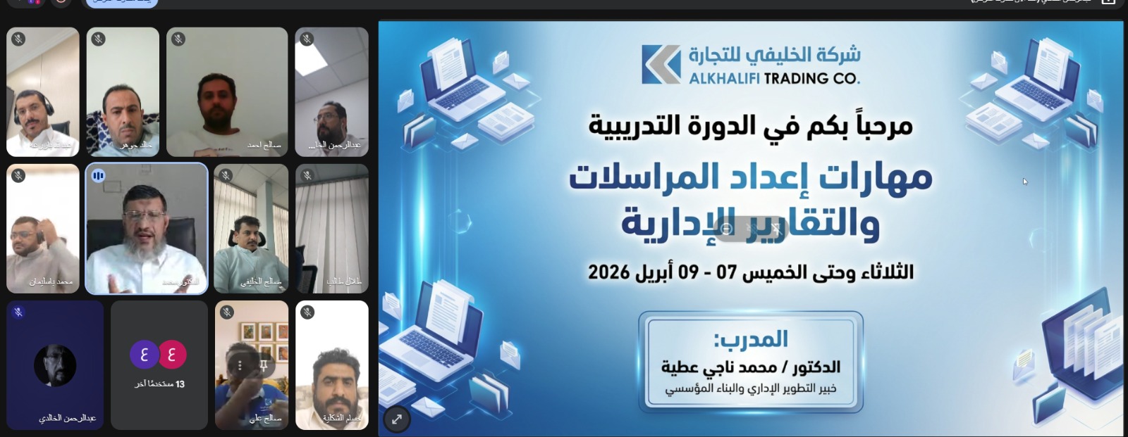 شركة الخليفي للتجارة تُنظّم دورة تدريبية متخصصة في مهارات إعداد المراسلات والتقارير الإدارية الاحترافية